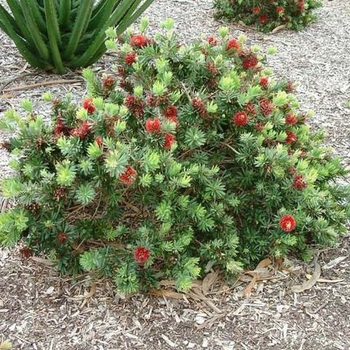 - Red bottlebrush flowers