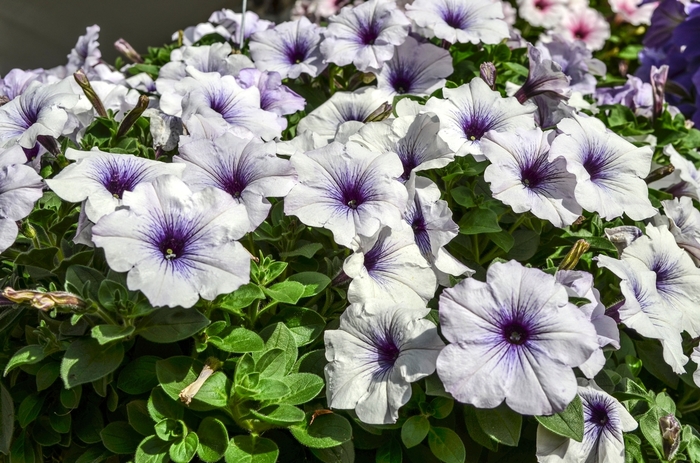 - Velvety, white flowers with blue markings cover this plant